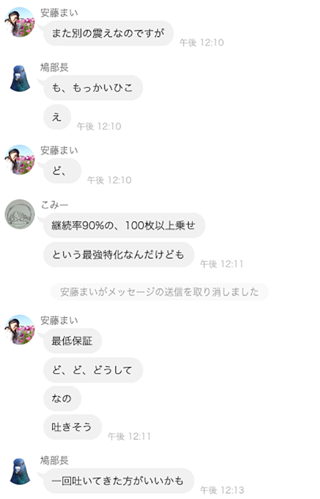 鳩部長も「1回吐いてきた方がいいかも」とアドバイスするのが精一杯。