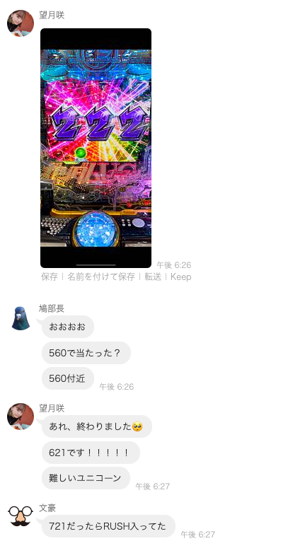 『ユニコーン』を打っていると聞き、一斉にサポート体制に入るグループLINEメンバーたち。