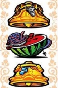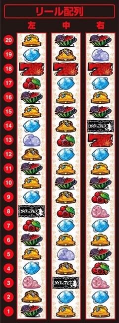 僕の大好きな横切りスイカ! ちょっと斜めに傾いてるのがまたいいよね。この絵柄で平行だとちょっと野暮ったい感じするもんなぁ。ベルの形もいい。サンダーとかバーサスの血を感じる。そりゃあそうです。同じメーカーなんですから。ミズホさんね。いやぁ、このベスベは本当に良い。しかも、この台にはベスベがいっっっっっっっっっっっっっっっっっっぱいあるんです。