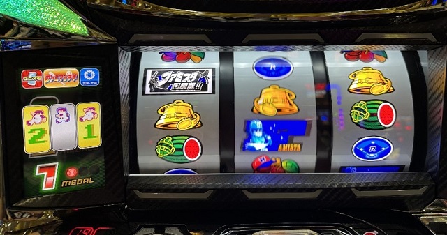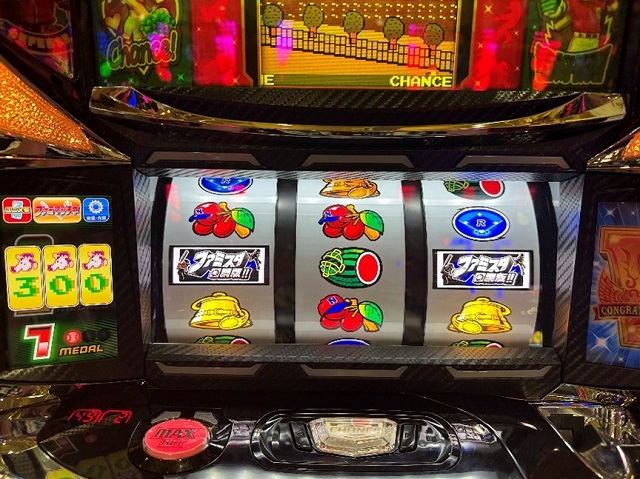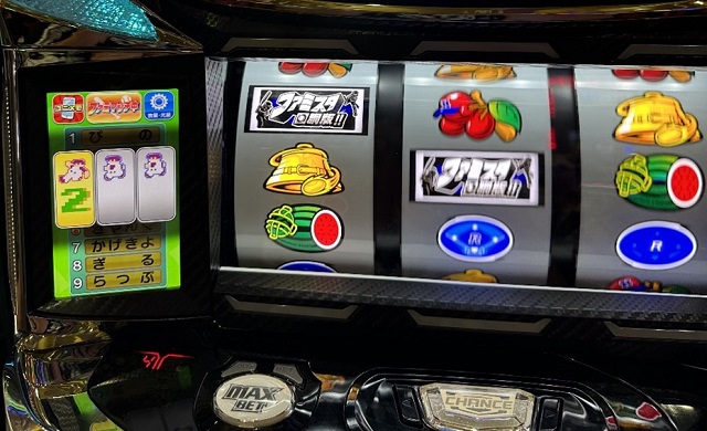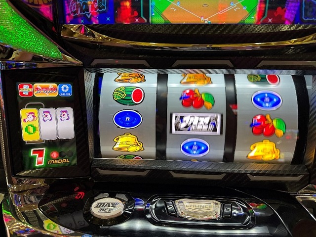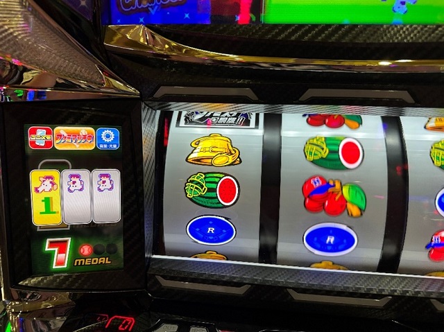 ビタ止まりした場合の成立役はハズレです。ここからリーチ目(ベルこぼし1枚役タイプを含む)が止まったらBIG確定。中段ラインでリプレイが揃っても同時当選確定です。ART中の攻撃フェーズでここが止まったら、とりあえずアウトはない安心出目にもなります。ただし1コマスベりの場合はリプレイもベルも揃うので注意。ファミスタは遊技中、液晶をタッチするとスベリコマ数が表示されるので活用しましょう。
