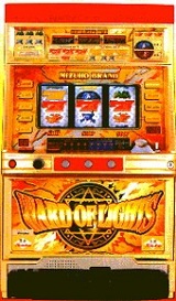 これじゃん! 『ワードオブライツ』じゃん! 真ん中の魔法陣の色こそ青だけど、文字がもうワードラじゃん! 「S」の部分。これ完全にワードラだって。アルゼから1998年にリリースされたCT機だって。『アステカ』に比べてBIGの獲得枚数が少なくなっているけど、そのぶんBIG確率が破格の1/159(設定6)っていうモンスターマシンだって。