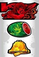 もうゴッチャゴチャ(笑) でもコレがひぐらしだよなぁ。配列の1~8にスイカを貯め込んでるのは、目押しに配慮してのことなのかな? っていうか、スイカよ。