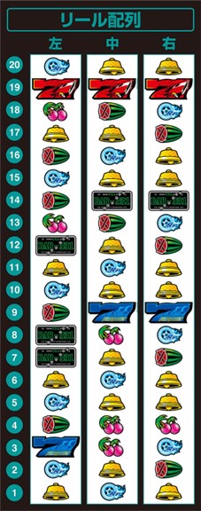 1つだけ不満があるとすれば、右リールの赤7周りね。僕は初代のチェリー・スイカ・赤7っていう配列が好きだったんですよ。BR判別で中リールに赤7を狙って、中段に赤7が停止したら右リールに下段に赤7を狙って、BIGの2確目を作る。あの作業がたまらなく愛おしかった。右リールに狙う赤7はベル・チェリー・赤7でもいいんだけど、僕はスイカ付きの方が好きだったんだよなぁ。そっちの方が座りが良かった。まあ、今作は赤7がひとつしかないし、しょうがないよね。え? ゲチェナがないのがショック? いやいや、Fドリにおいてゲチェナなんか仕事しないクセに態度だけデカい無用の長物でしたから。不要です。僕がスイカ付きの赤7を推すのも、それが理由のひとつだしねぇ。