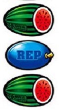 うーむ。見れば見れるほど、どこを狙うのが一番「自分好み」なのかがわからない配列(左リール)だよなぁ。いや、別に普通に鳥を上段に狙うと思うんですよ。んで、ハサミ打ちして、スイカがテンパイしたら中リールもスイカを狙う。それでOK。めちゃくちゃ楽しいと思うんです。たまに気が向いたら青7を上段に狙って、2コマすべったら中リールを押すか右リールを押すか熟考した後に小役否定型を願いながらストップボタンを押す…みたいな、ね。それを繰り返していれば、気が付くと外は真っ暗。そんな感じで幸せだと思うんです。