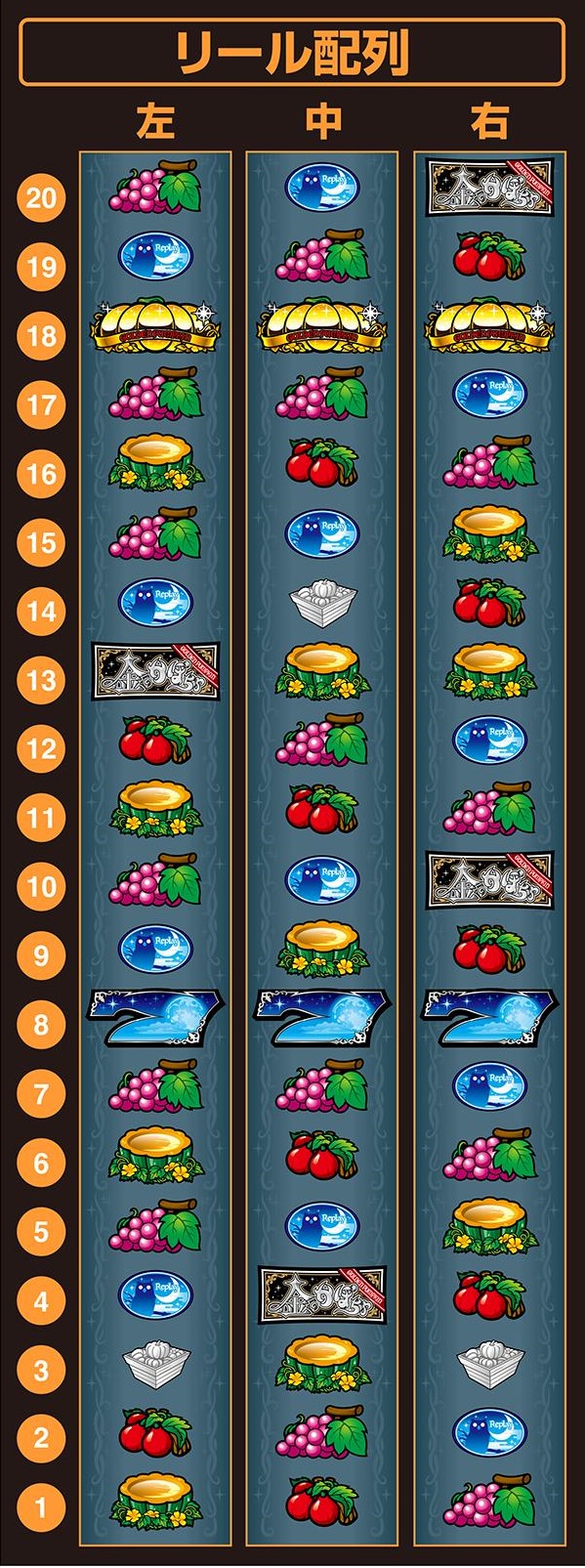 金色のカボチャも性的だよなぁ。個人的に中身をくりぬいたカボチャがスイカっぽくて好きです。配列的には…うん、まあ可能性は色々ありそう。小役サンドマニアだけど、このブドウ・カボチャ・ブドウはあんまりそそられないなぁ(笑) じゃあ、どこにグッと来るのかって? 仕様です。
