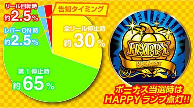 初当りはレア役からの当選がメインで、弱レア役だと5~7.81%、強レア役だと25%、リーチ目役で100%。で、いいなと思ったのが告知タイミングね。