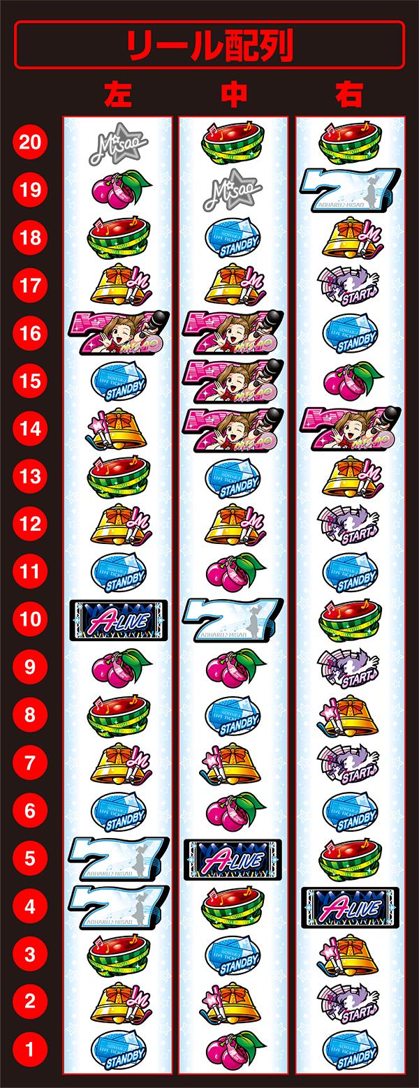 赤7は上段に狙うじゃん? で、下段まで赤7がスベってきたら小役以上っていう感じなのかな。中リールにスイカ絵柄が2個しかないし、右リールも3個しかないから、スイカの取りこぼしを防ぐのが結構大事になりそう。もしかしたら中リールの3連赤7はスイカの代用になるかもしれないけど、なんかその可能性は低そう。赤7上段→中リール3連赤7がズドンとかめっちゃ気持ちいいだろうなぁ!