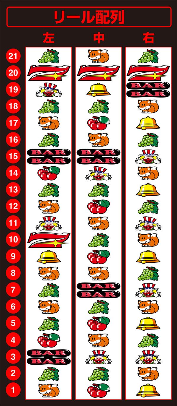 とりあえず大事なのは、この台は小役優先制御であること。小役とボーナスが同時成立した場合は、ボーナスよりも小役の引き込みを優先します。そのことを念頭に置いてください。
