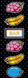 もう思い切ってさ、羽根・リプ・羽根にするのもアリよね。んで、6番の白BARを2連BARにしちゃうの。ブドウ・白・白と白・白・羽根っていうソワソワする出目が拝めるじゃん? あり。どちらかのBARをチェリーの代用構成に含めてしまうとかね。いいじゃん。