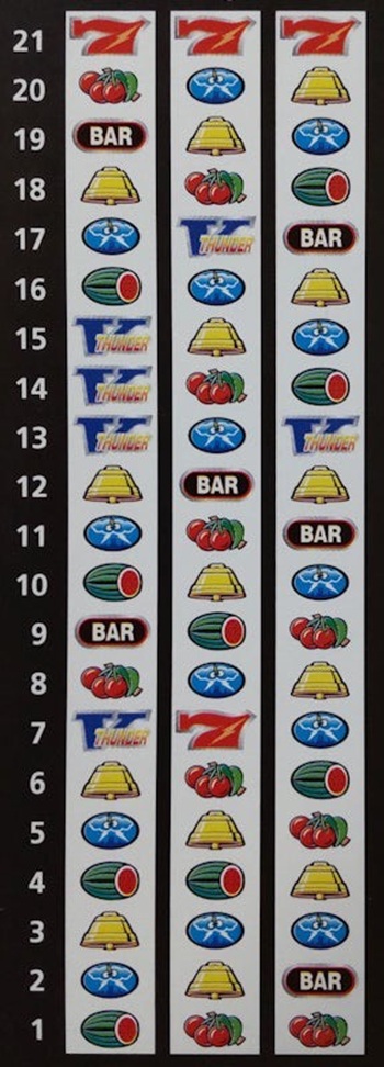 左リールの配列はかなり変わっています。3連Vをダイレクトに狙うとスイカないしはチェリーを取りこぼすけど、そこを除けば自由度がかなり上がっているかと。
