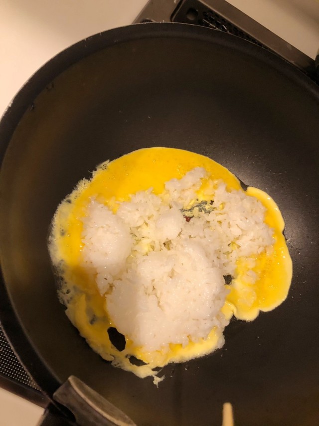 ご飯と卵を炒める。