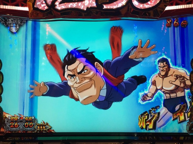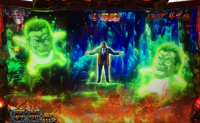 そんなワケで本日2台目。気持ちも新たにしばらく回していると、画面左上の猪木像が何やら激しくザワザワしはじめました。