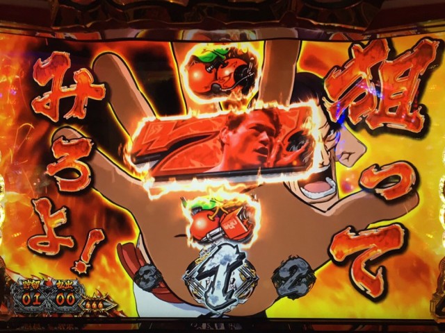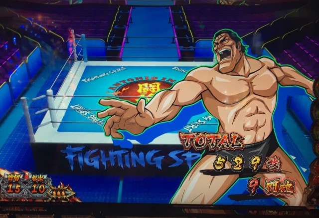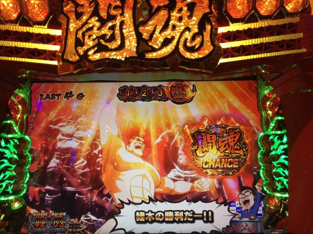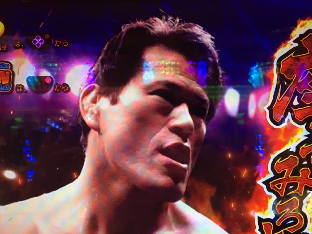 一瞬の演出で写真に撮れなかったのですが、猪木像が画面いっぱいに映し出された後、「怒ポイント」MAXの恩恵である「コロシアムZONE」に移行!