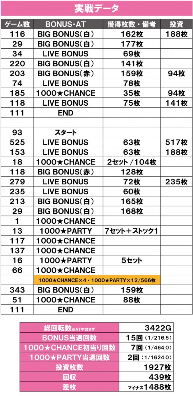 なので、「1000★CHANCE」はあくまで「1000★PARTY」突入のためのチャンスゾーンぐらいに考えておいたほうが良さそう。