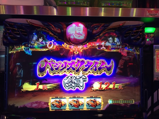 私の台は計4回も天井到達となりました。が、お隣の台では1度もナシ! そして隣の台は「争忍の刻」開始時に何やら意味ありげな画面が出たりとおそらく高設定だったと思うのですが、とにかくBC当選が早く、こまめに来る印象でした。私の台とは雲泥の差。