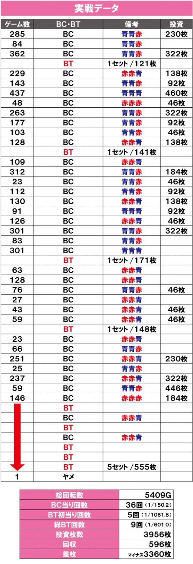 結局このBTはBCを2回絡めた5戦獲得枚数555枚で終了。もう、これだけでも救われた気持ちです…。