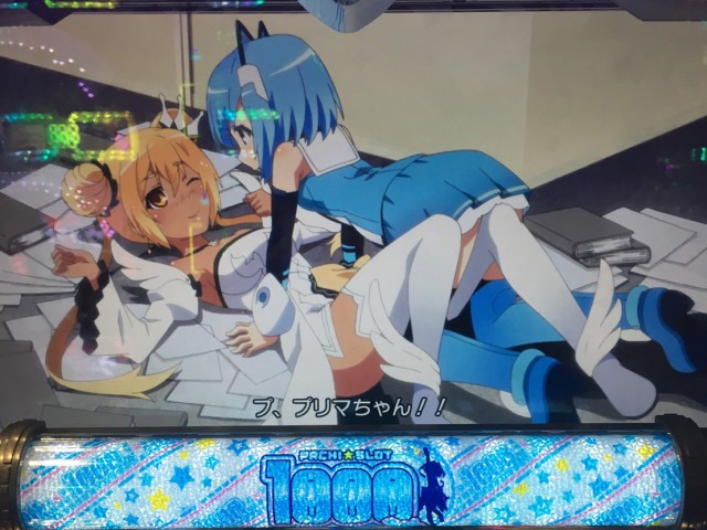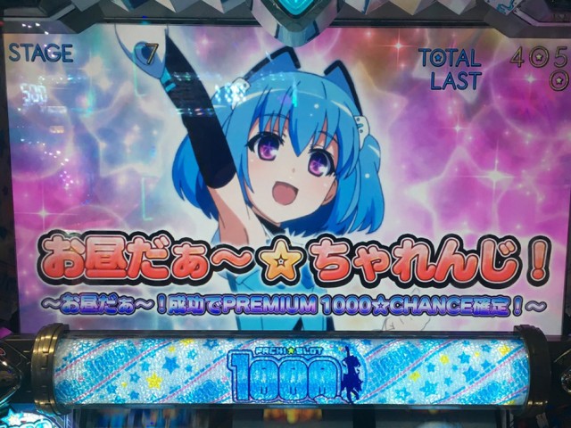やっと入れたATで獲得枚数35枚という数字を叩き出して、心が折れそうになりながらも、終盤では1000枚でちゃう本機最強AT、「PREMIUM 1000★CHANCE」のチャレンジ権を得て、ドキドキの展開へ。
