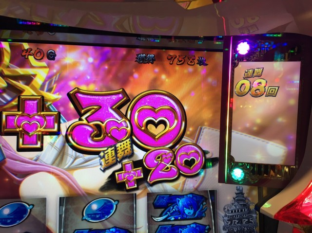 実戦前は、「そんなうまい話があるわけないよ〜」と半信半疑でした。多分みんなもそうだったのでしょう、導入初日なのに愛姫を狙うライバルがいなくて、今では考えられないほどアッサリと台を確保できましたから。