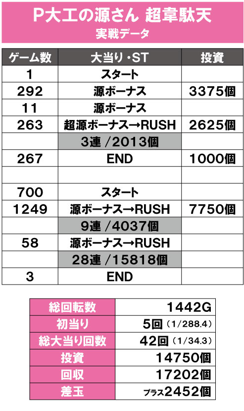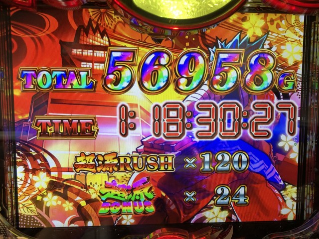 なんとその後、僅か58回転でまたまた初当りをゲットし、「超源RUSH」にも突入!