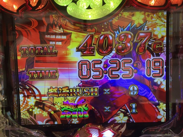 しかしそこまで長くは続かず、9連チャンの4000発(表示)出したところでRUSH終了。