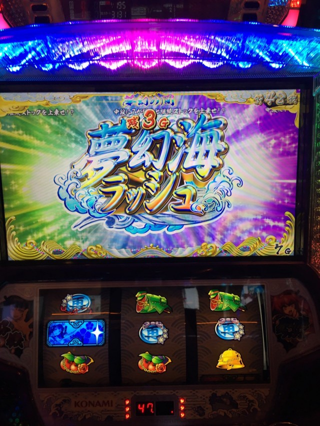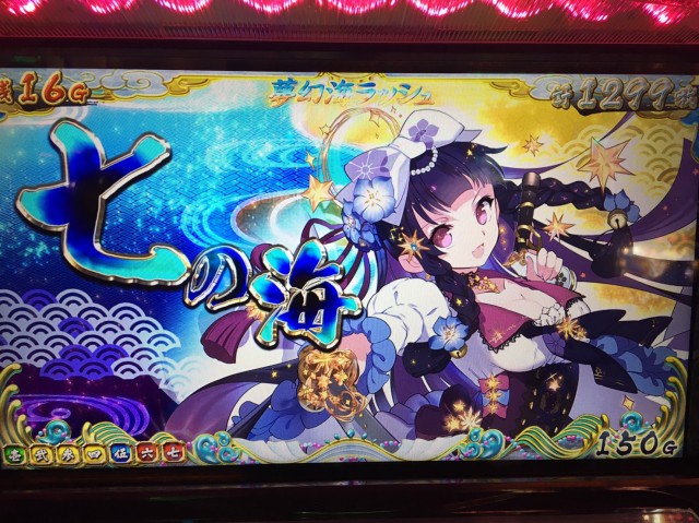 しかもここでは狙えカットインで3回も7が揃い、待望のメインAT「夢幻海ラッシュ」に突入確定!