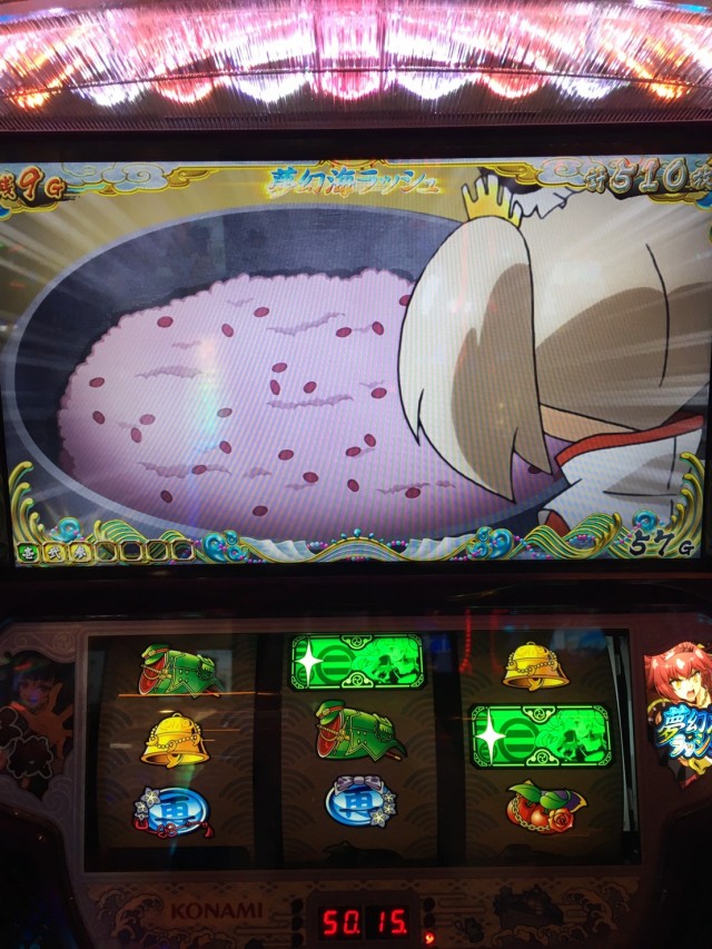 この機を無駄にしないとばかりに、「夢幻の間」では弱チェリーを引いて「夢幻海ラッシュ」突入。