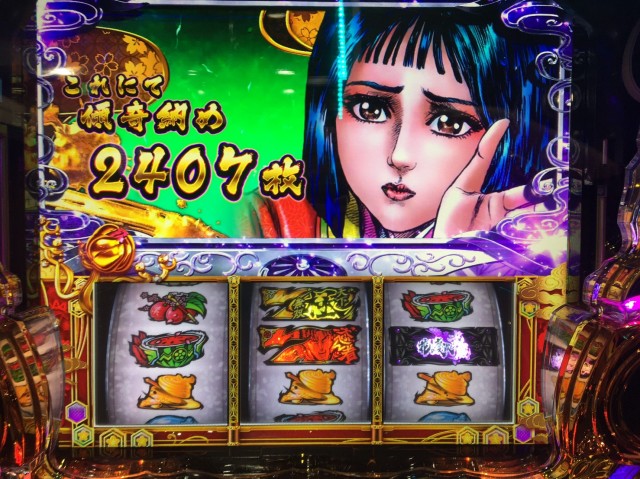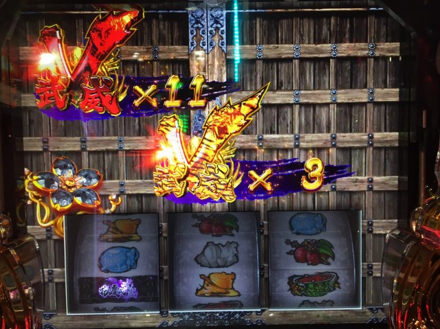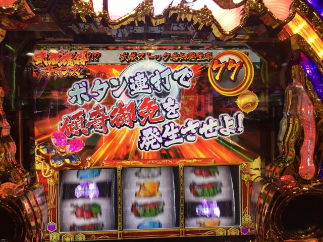 その後、EX虎武威ストック獲得が可能な金7揃いボーナス「傾奇御免の極当り」に当選。