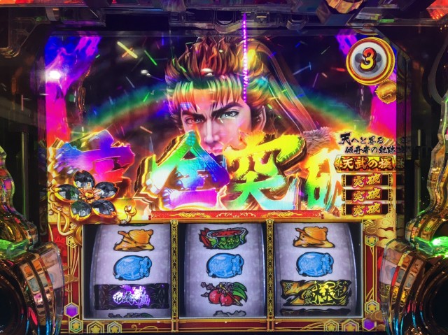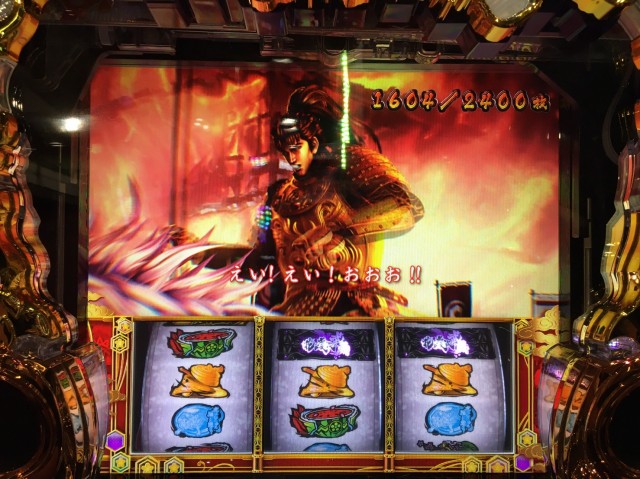本機のCZは「城門3連破」でAT当選となるタイプ(3連戦の武将バトル・完全告知も選べます)。つまり極玉を3個持ってCZに突入すれば、実質AT当選が確定ってことですね。極玉アツい!