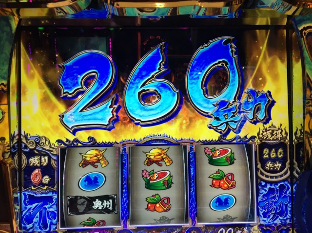 ただ、1/15の押し順ナビ50回(出陣ポイント50pt)で天井ですが、それなりの分母なので場合によってはかなりG数が嵩む。