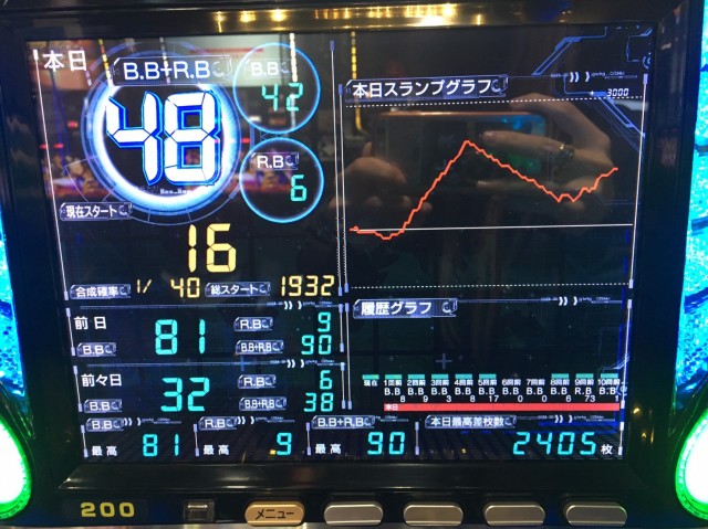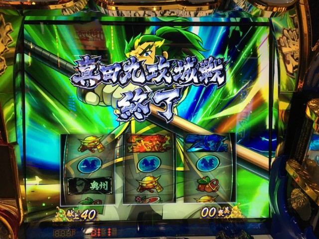 2400枚あった持ちメダルを800枚程まで減らし、ばっちり鞭と酸いを味わいつつ、最後に良さげなモードから当選した幸村決戦で少し取り戻せました。