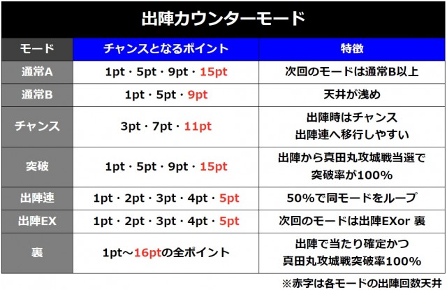 通常時は、1/15で発生する出陣ナビに従った際にもらえるポイントを「出陣カウンター」に貯め、規定ポイント1~16ptのどこかで出陣、即ち前兆へ発展。