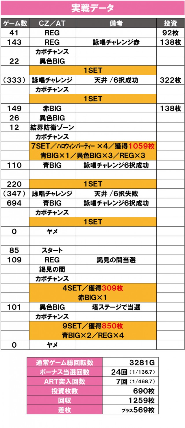 そしてもちろん、全ボーナス&ART後(オバケカボちゃんバトル時以外)には『詠唱チャレンジ』。=6択当てのチャンスが必ずついてきます。このワンチャン感が良いよね。