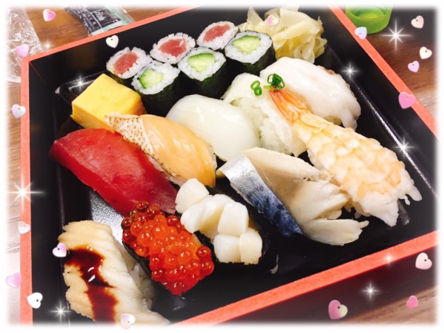お寿司の出前! ワサビ食べれないことスタッフさんに伝えるの忘れて、涙目で食べたよ!