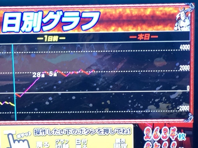 朝イチから18時くらいまで打ち続けましたが2000枚から伸びることは無く...終了!