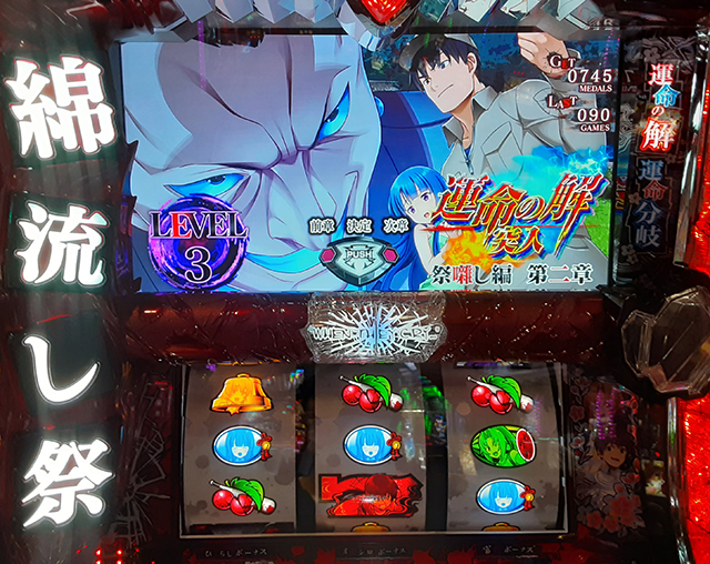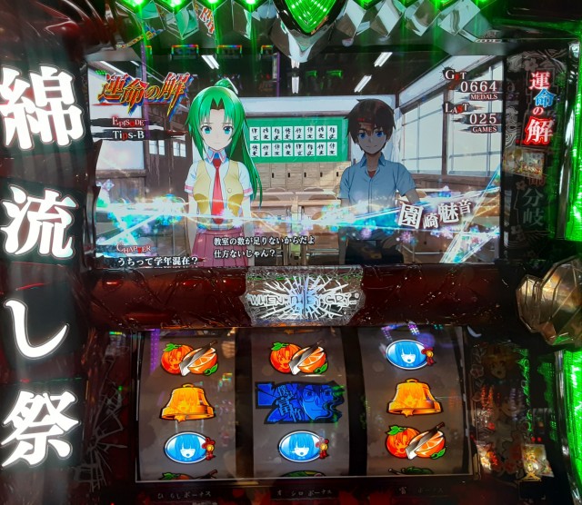 一応、初代の『パチスロ ひぐらしのなく頃に 祭』もシリーズ機である『パチスロ うみねこのなく頃に』も技術介入度が高いことによる甘さをウリにしてきたわけですから、RTが完走型ARTになろうが機械割が100%超えていれば意識がまずそこにいっちゃうんですよね。皆さんがどう感じるかはさておき、僕はそうなりました。