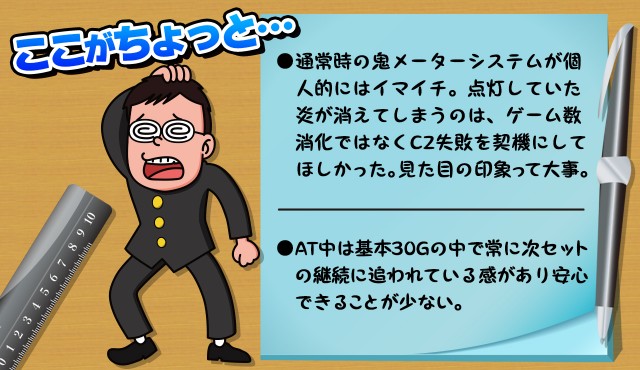 じゃあ、とりあえずもうATに突入させて、ATの1セット目を突破型にさせますかと。鬼浜にかんしてはそういった仕様にしたという感じですね。