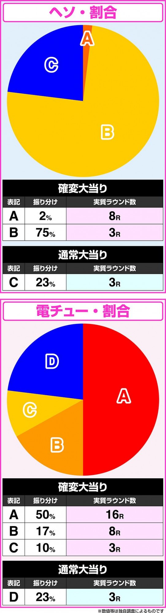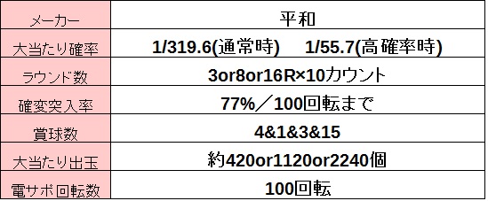 この機種の大当たりは77%がSTに突入します。ST中は100回転以内に1/55.7の大当たりを引ければOK!しかも右打ち時の50%が約2400個の大当たりなので瞬発力抜群!