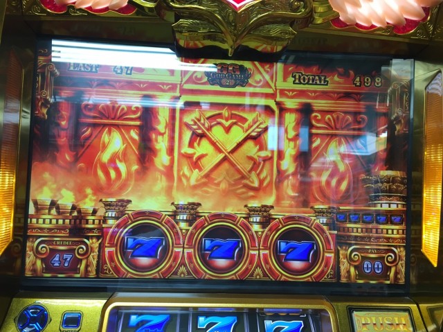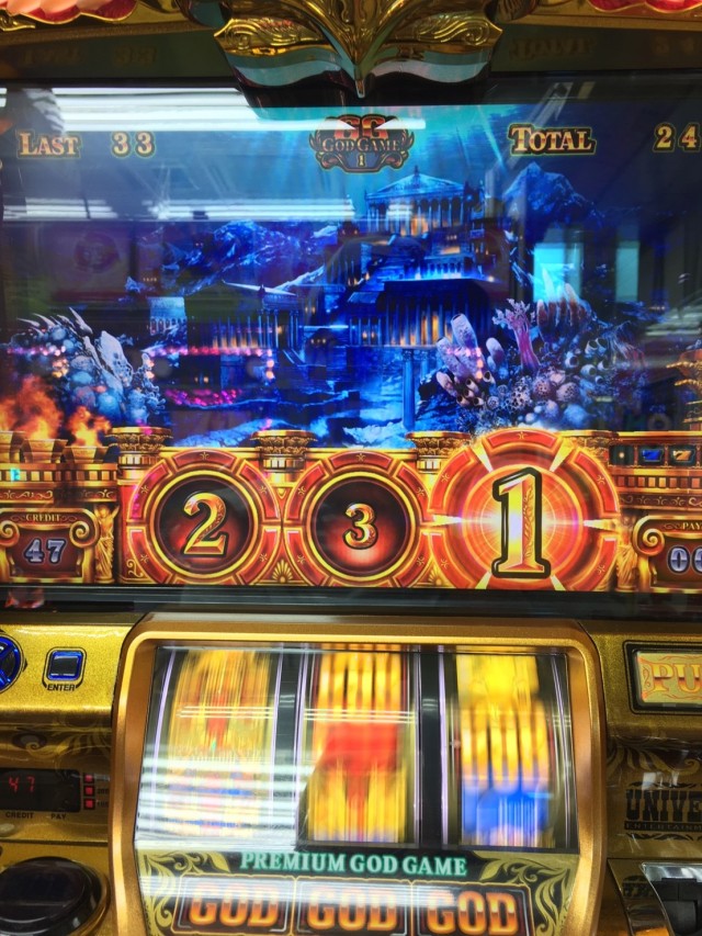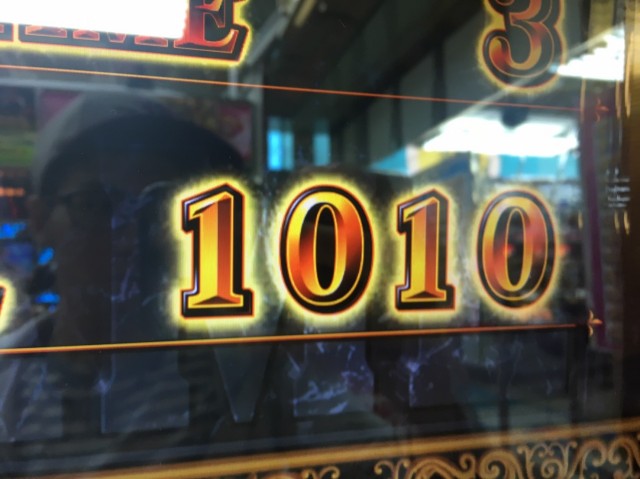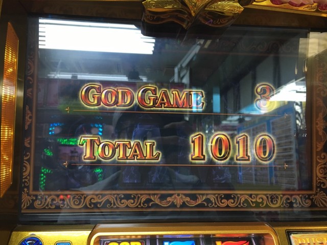 あれ?でもGG3発で獲得枚数は1010枚。「ミリオンゴッド神々の凱旋」は純増3枚ですから期待値よりも多く出ていますね。