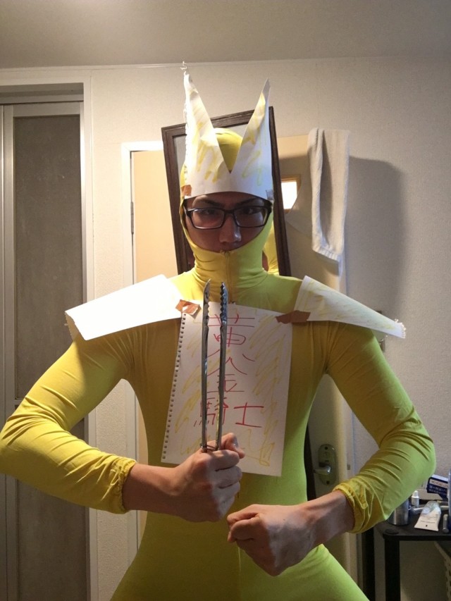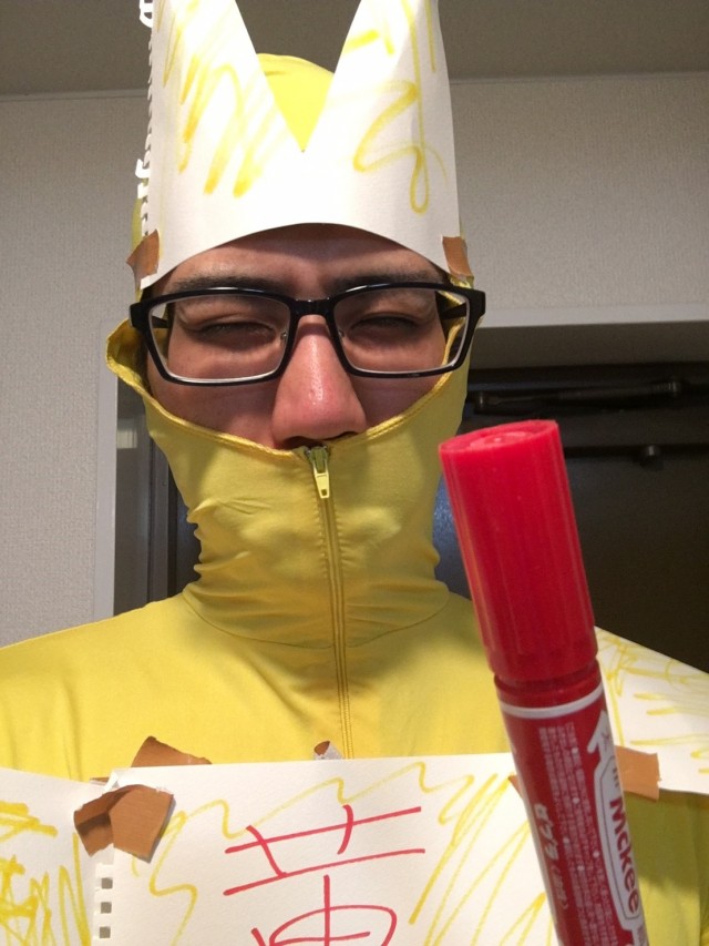 ちなみに、負けてしまったのでコスプレのクオリティも上げられず...。思い出の赤保留を赤マジックで表現するのが精一杯です。