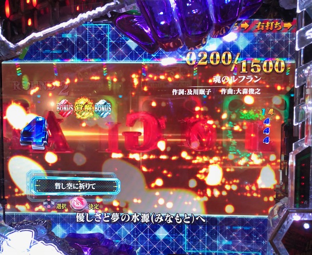 ボーナス→覚醒15Rボーナス→ボーナス→終了。