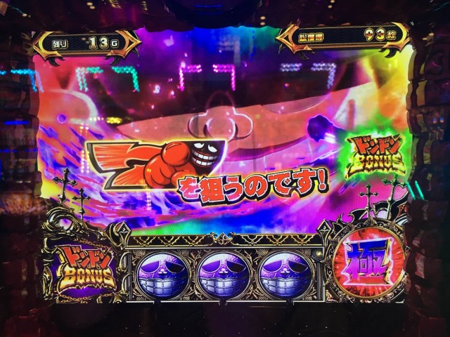 ボーナスもいろいろ種類があるのですが、初打ちにして一番えらい極ドンドンBONUSひけちゃいました(^^)