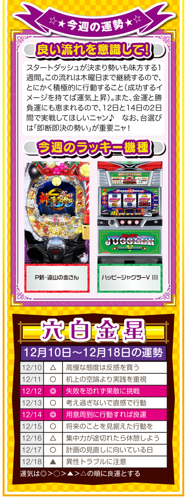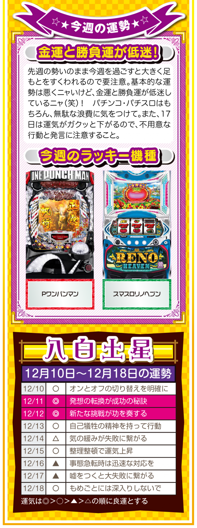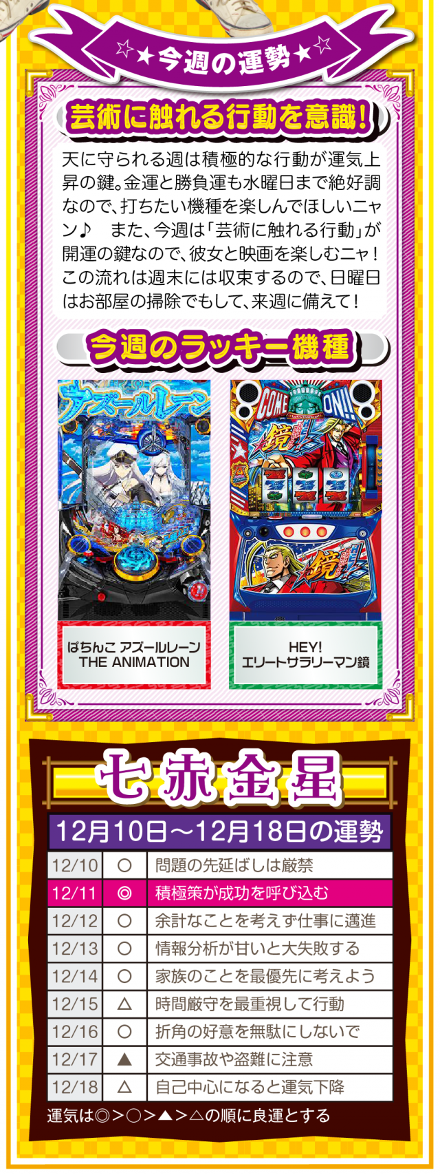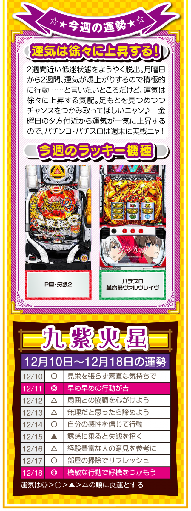 過去のおかげで今がある。過去に感謝して過去を楽しむことができれば、きっと未来は明るいニャン♪ というわけで早速、12月12日から12月18日の1週間を鑑定ニャ(恋愛に関しては過去を引きずりまくるフォー・チュンチュンが、オマケとして12月10日と11日の運勢も鑑定したニャン♡)!