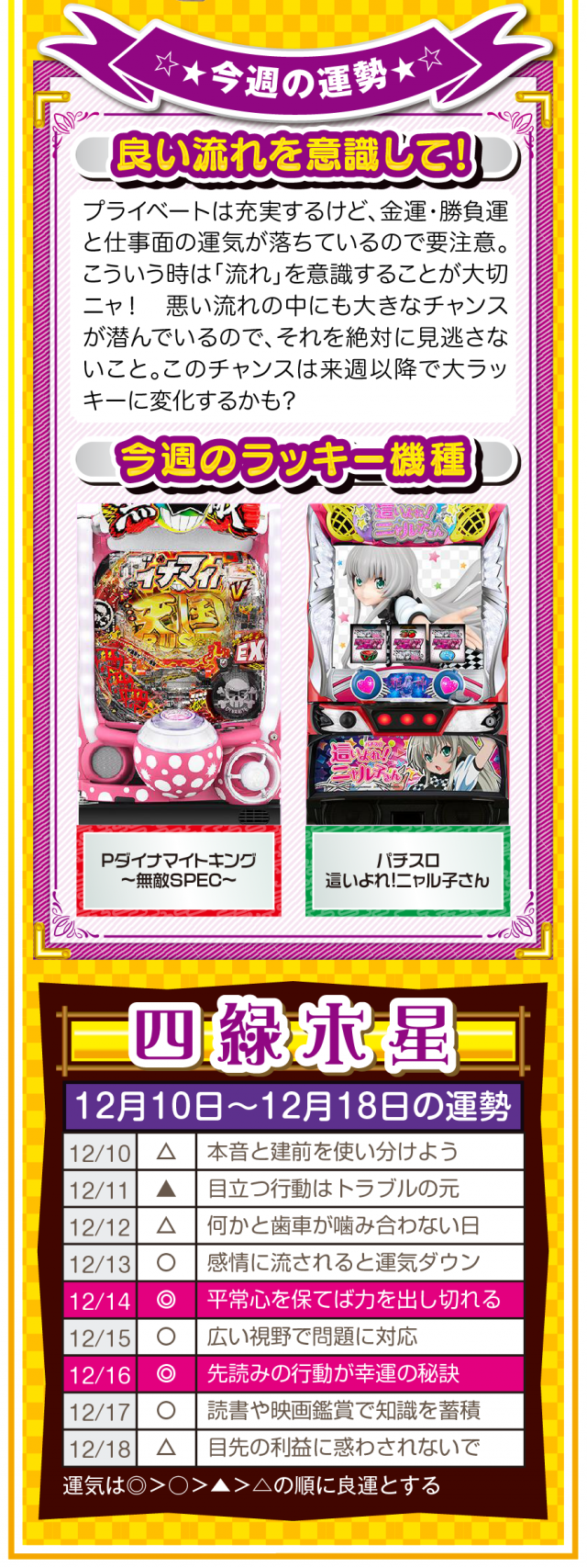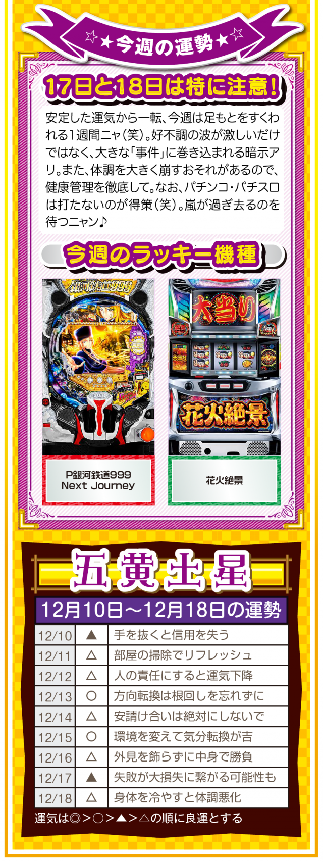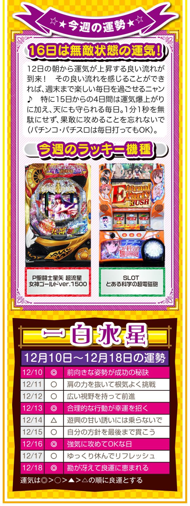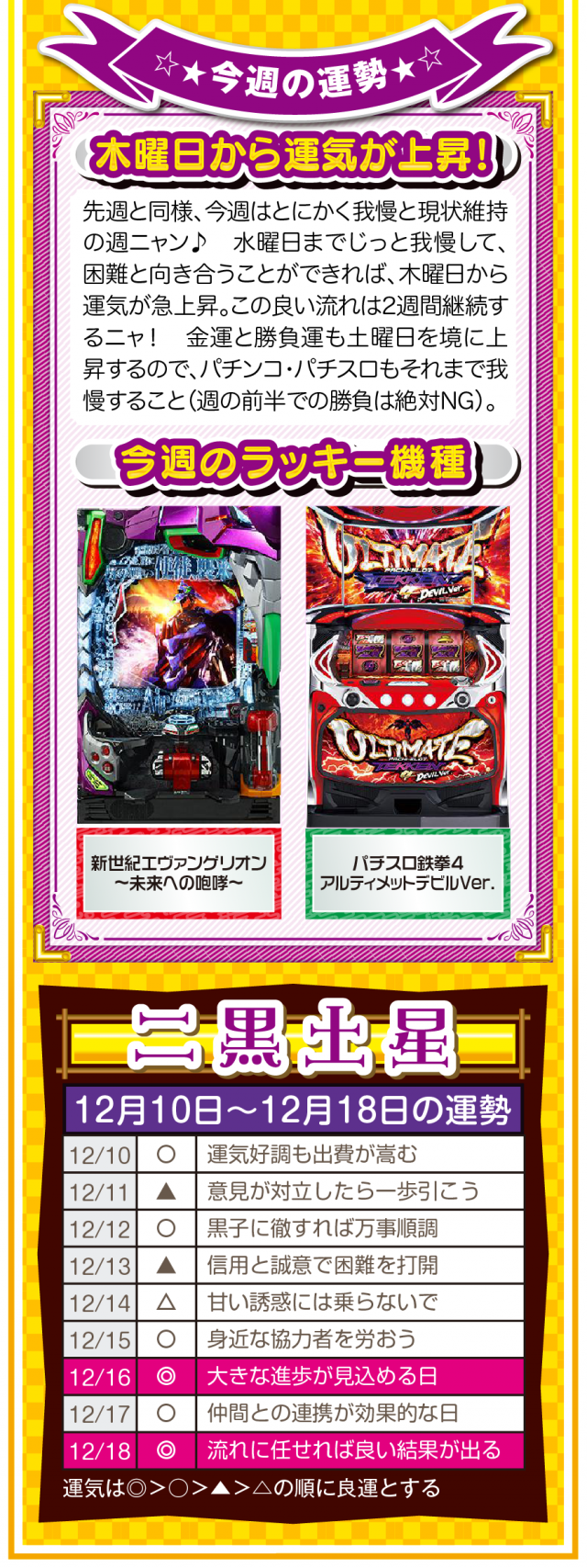 過去のおかげで今がある。過去に感謝して過去を楽しむことができれば、きっと未来は明るいニャン♪ というわけで早速、12月12日から12月18日の1週間を鑑定ニャ(恋愛に関しては過去を引きずりまくるフォー・チュンチュンが、オマケとして12月10日と11日の運勢も鑑定したニャン♡)!