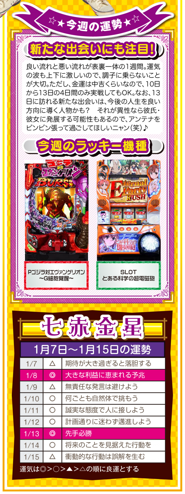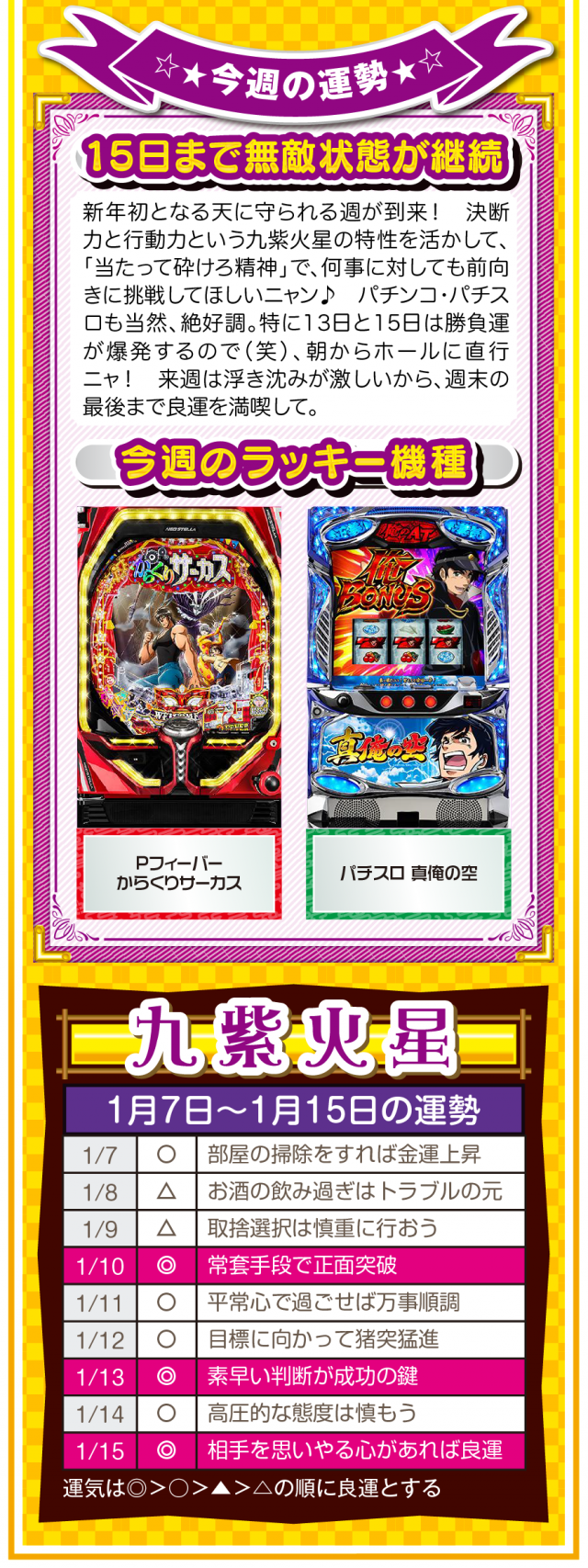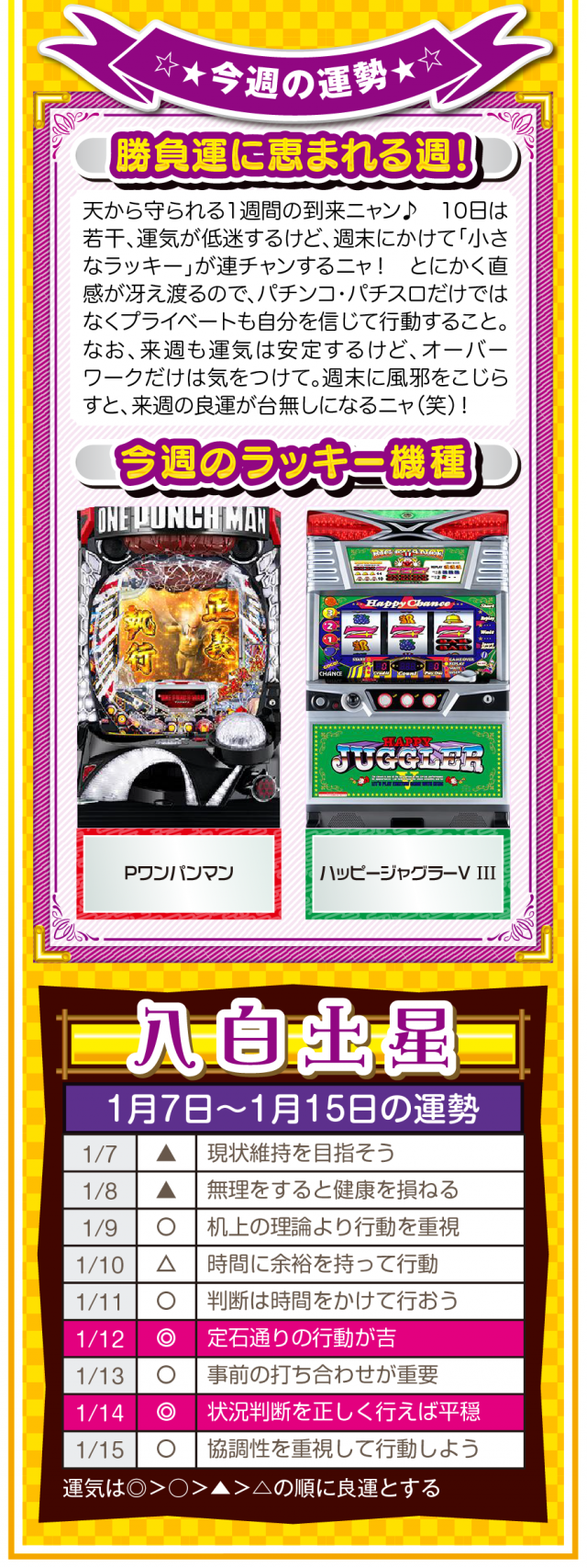 2023年は変化を受け入れ、個性を伸ばす年。「人の話に耳を傾ける」が開運のキーワードなので、運を味方に付けるためにも「聞き上手」を念頭に新たな1年を過ごしてほしいニャン♪ というわけで早速、1月9日から1月15日の1週間を鑑定ニャ(聞き上手のアラフォーを目指すフォー・チュンチュンが、オマケとして1月7日と8日の運勢も鑑定したニャン♡)!