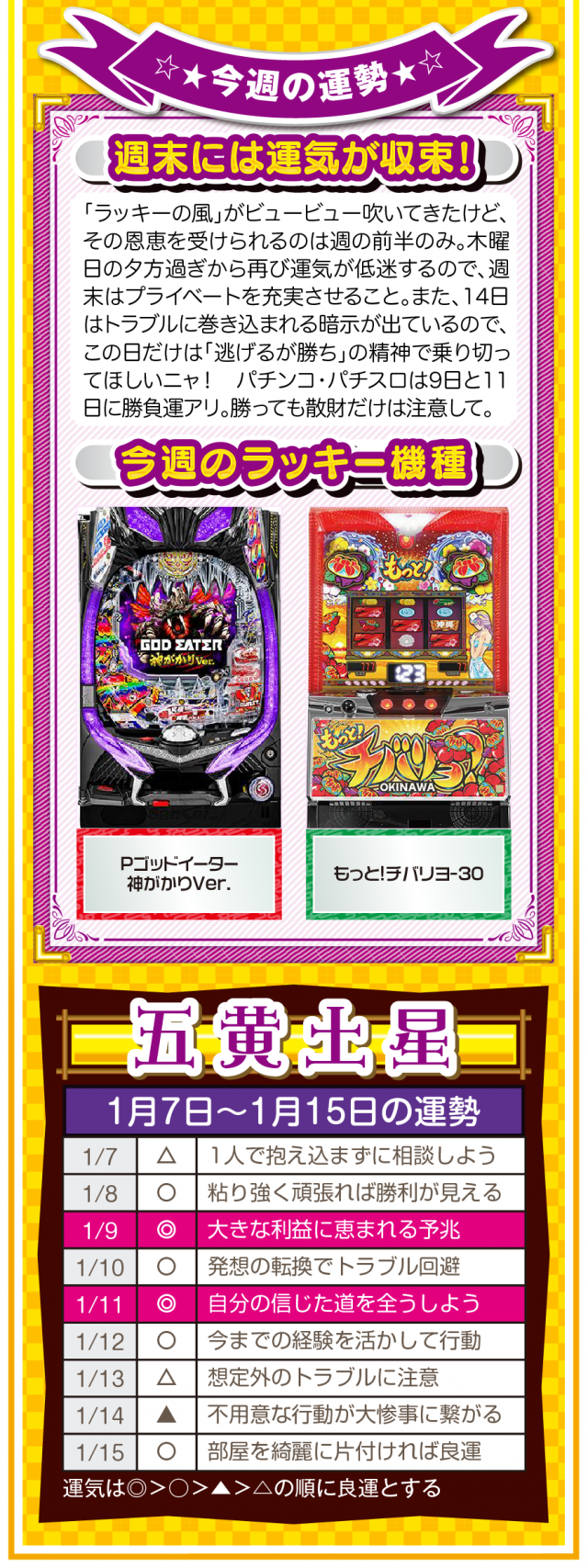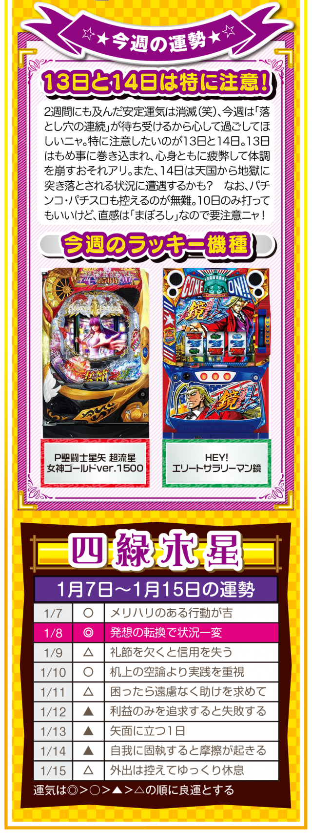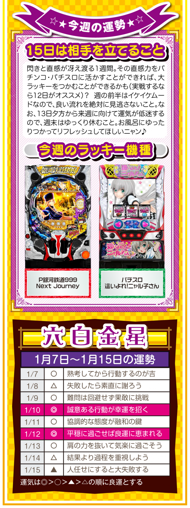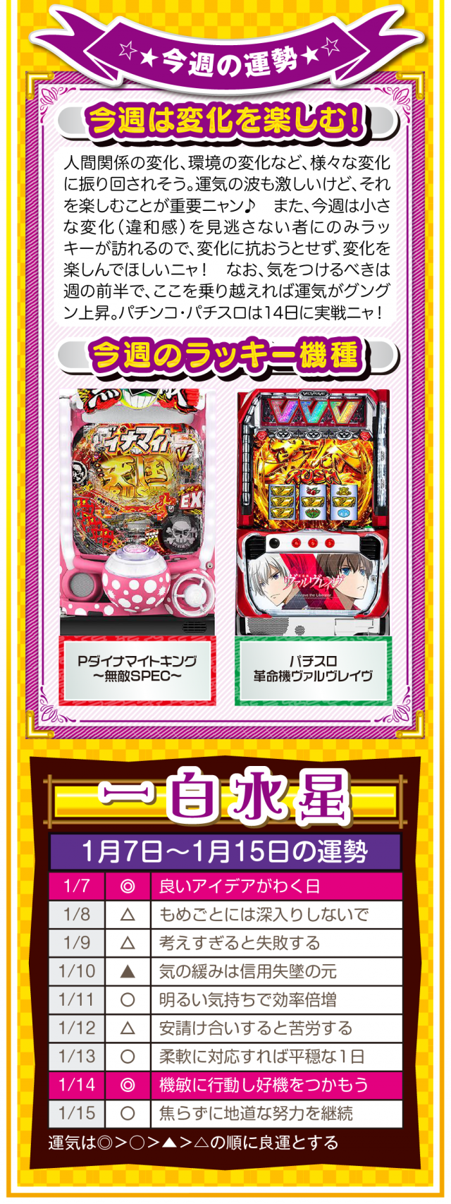 2023年は変化を受け入れ、個性を伸ばす年。「人の話に耳を傾ける」が開運のキーワードなので、運を味方に付けるためにも「聞き上手」を念頭に新たな1年を過ごしてほしいニャン♪ というわけで早速、1月9日から1月15日の1週間を鑑定ニャ(聞き上手のアラフォーを目指すフォー・チュンチュンが、オマケとして1月7日と8日の運勢も鑑定したニャン♡)!
