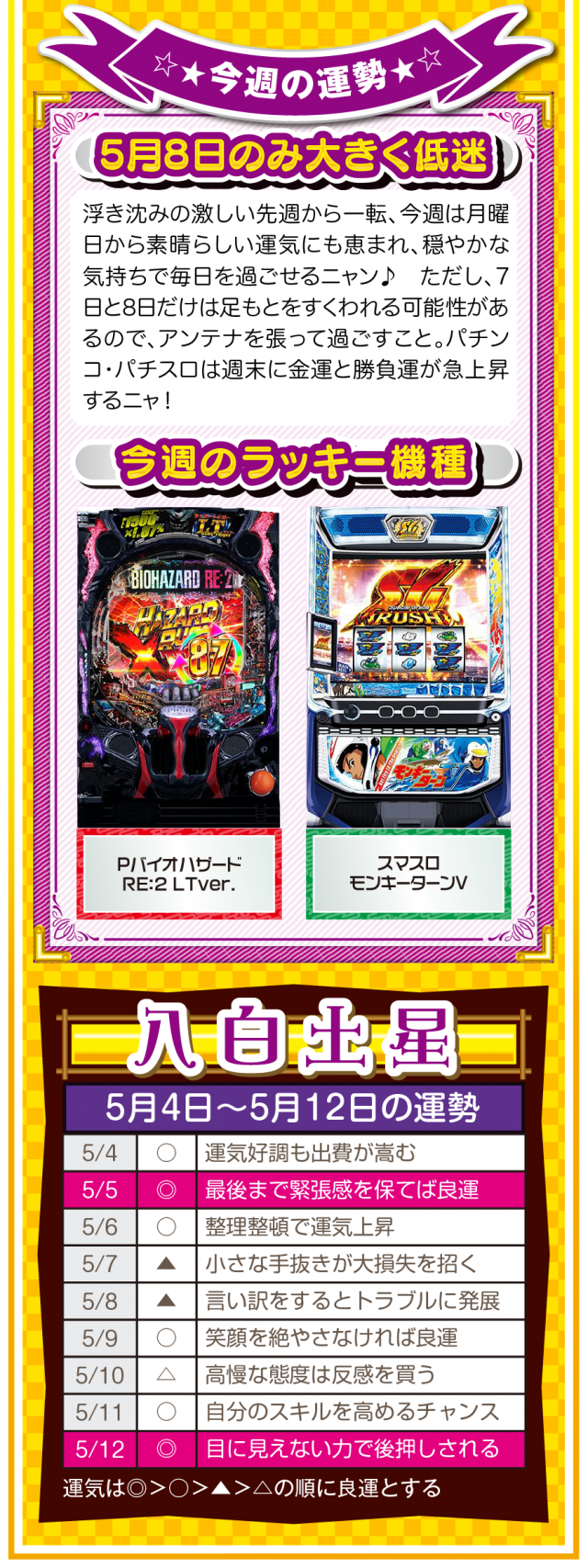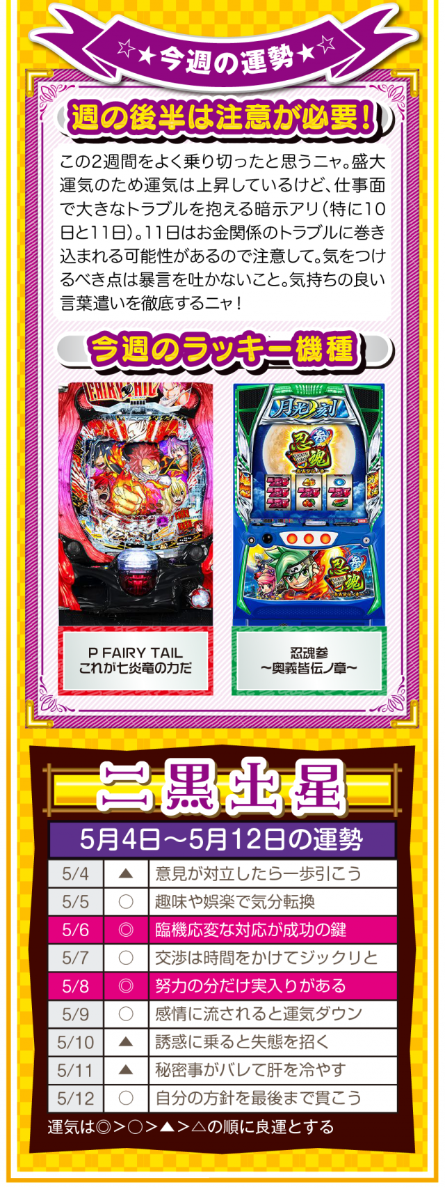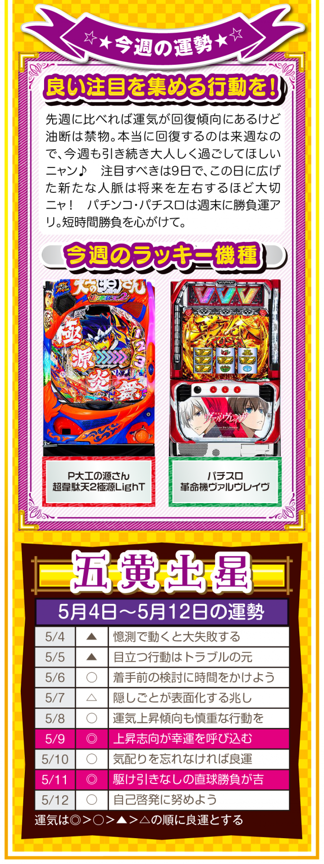自分自身の考え方を変えることは、相手に屈するわけではなく「思いやり」であることを覚えておいてほしいニャン♪ というわけで早速、5月6日から12日の1週間を鑑定ニャ(GWはNetflix三昧のフォー・チュンチュンが、オマケとして5月4日と5日の運勢も鑑定したニャン♡)!