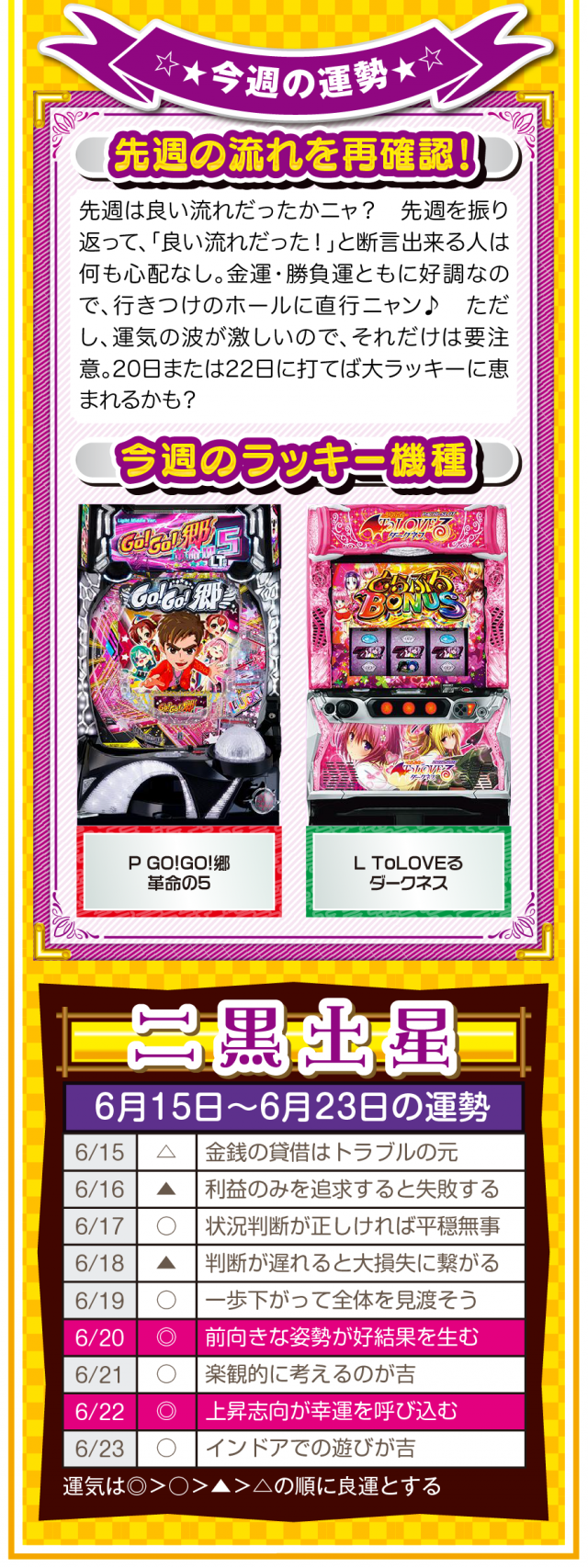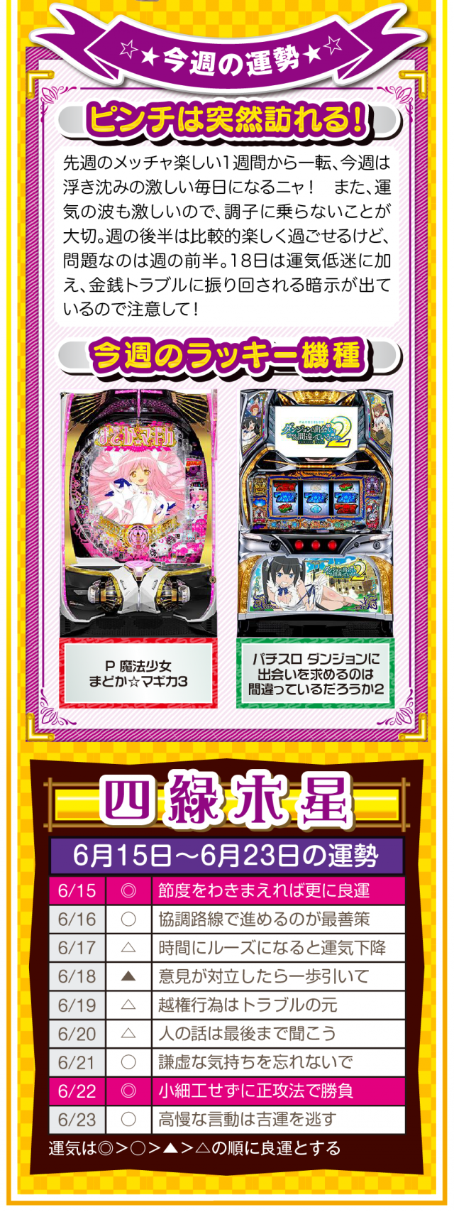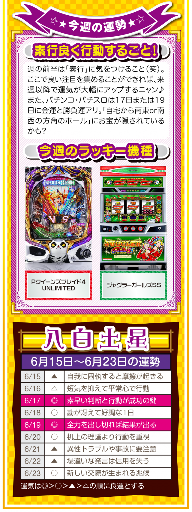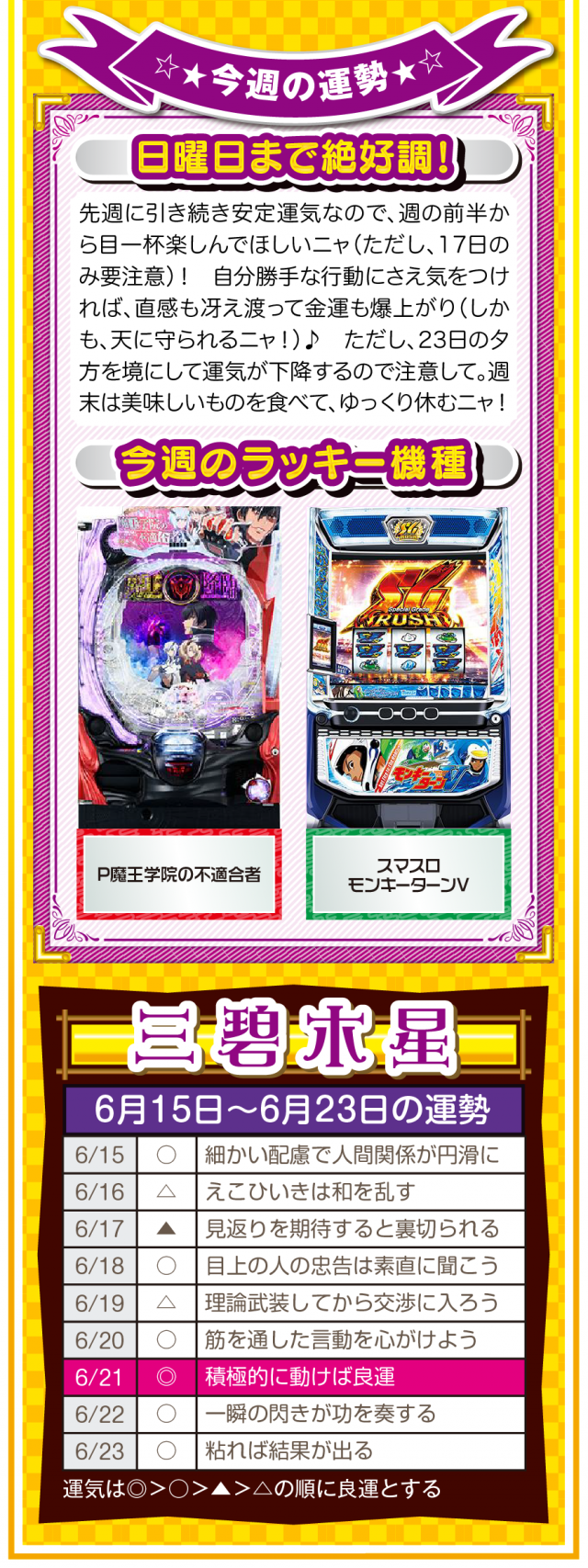 だから、話し上手の人が「ちょっと流れが悪いかも?」と思ったら聞き上手を意識すること。素敵な聞き役に徹すれば、仕事も恋愛も良い方向に導かれることを覚えておいてほしいニャン♪ というわけで早速、6月17日から23日の1週間を鑑定ニャ(恋愛相手には聞き役になれないフォー・チュンチュンが、オマケとして15日と16日の運勢も鑑定したニャン♡)!