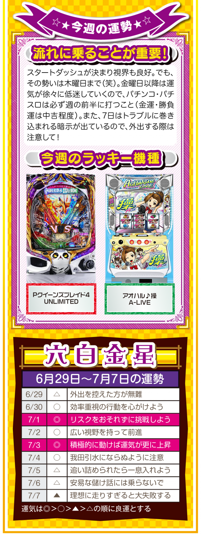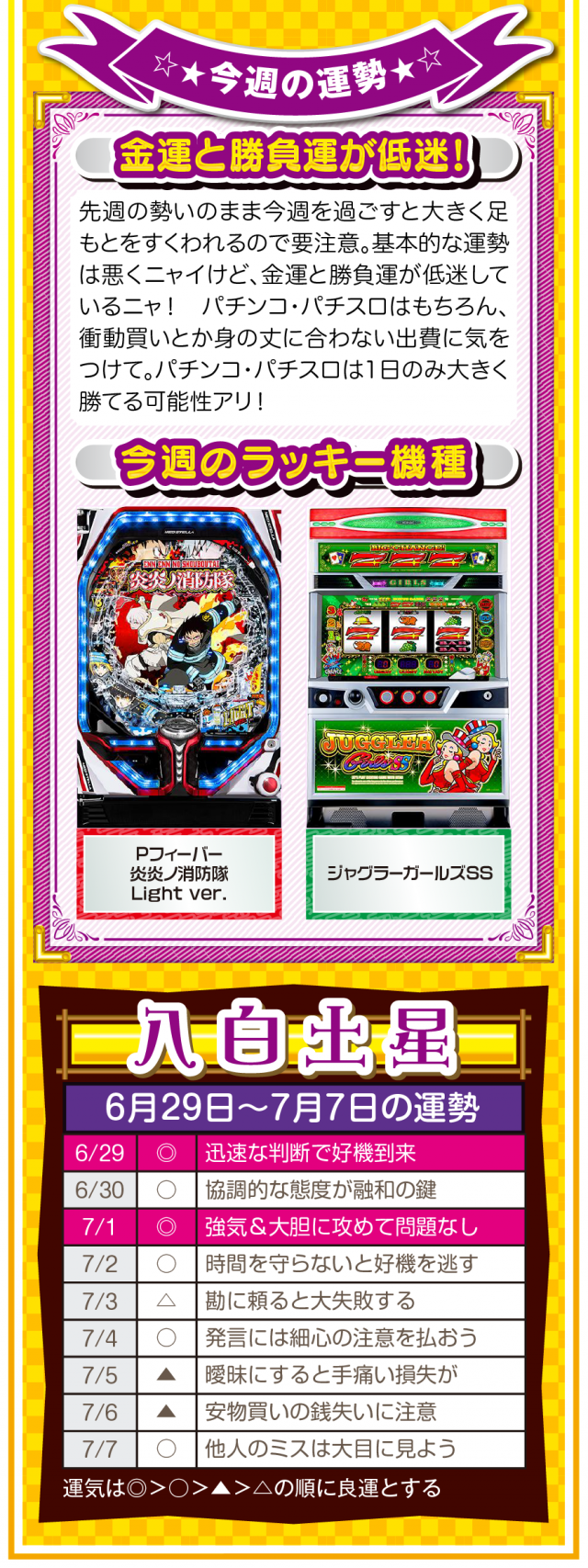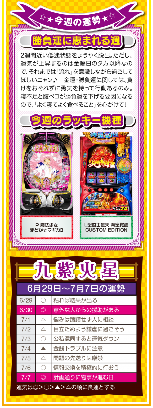 他人の時間を奪う行動は最大の罪であり、自分自身をさらなる窮地に落とし込む。だから感謝だけは忘れずに、つねに愛を持って過ごすことを忘れないでほしいニャン♪ というわけで早速、7月1日から7月7日の1週間を鑑定ニャ(友人の愚痴ばかり聞かされるフォー・チュンチュンが、オマケとして6月29日と30日の運勢も鑑定したニャン♡)!