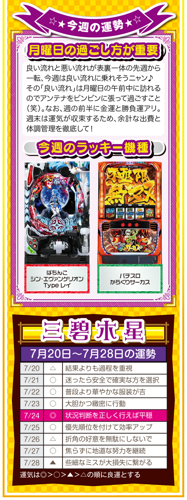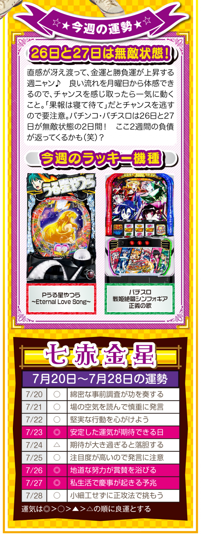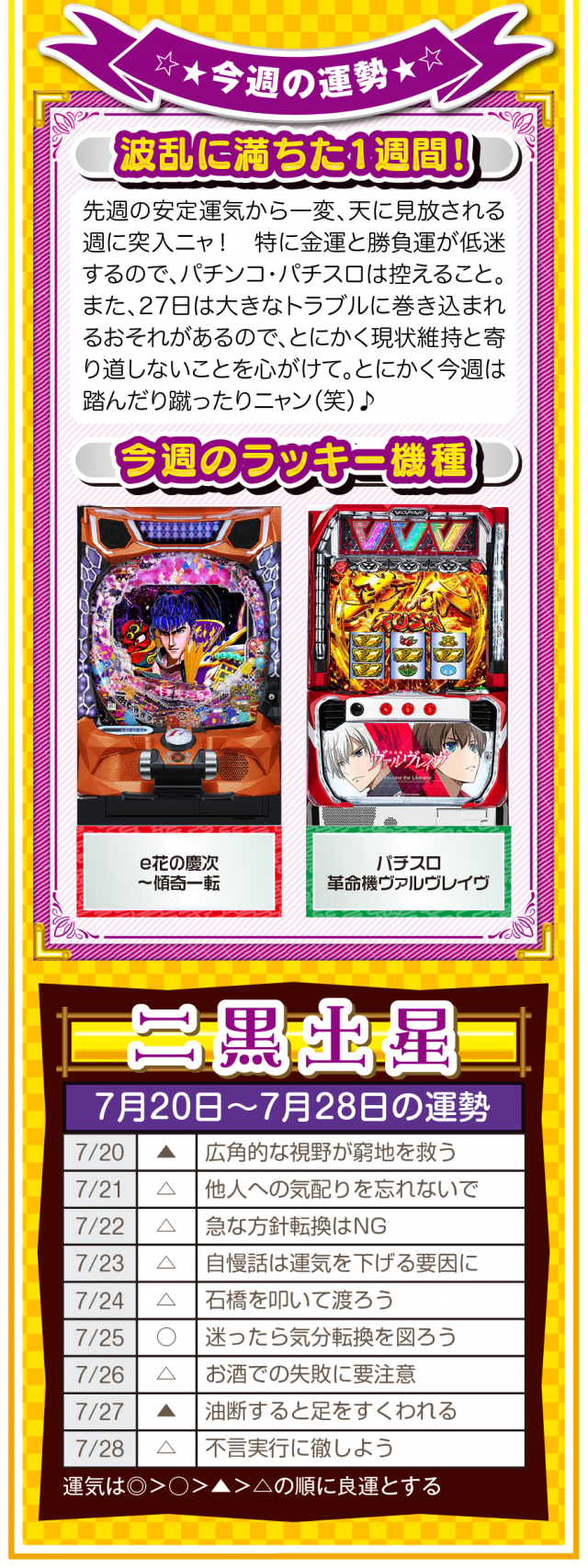 器の容量は人それぞれだけど、多くを得たいなら多くを失えばいいことを覚えておいてほしいニャン♪ というわけで早速、7月22日から7月28日の1週間を鑑定ニャ(断捨離し過ぎて部屋がスッカラカンのフォー・チュンチュンが、オマケとして20日と21日の運勢も鑑定したニャン♡)!