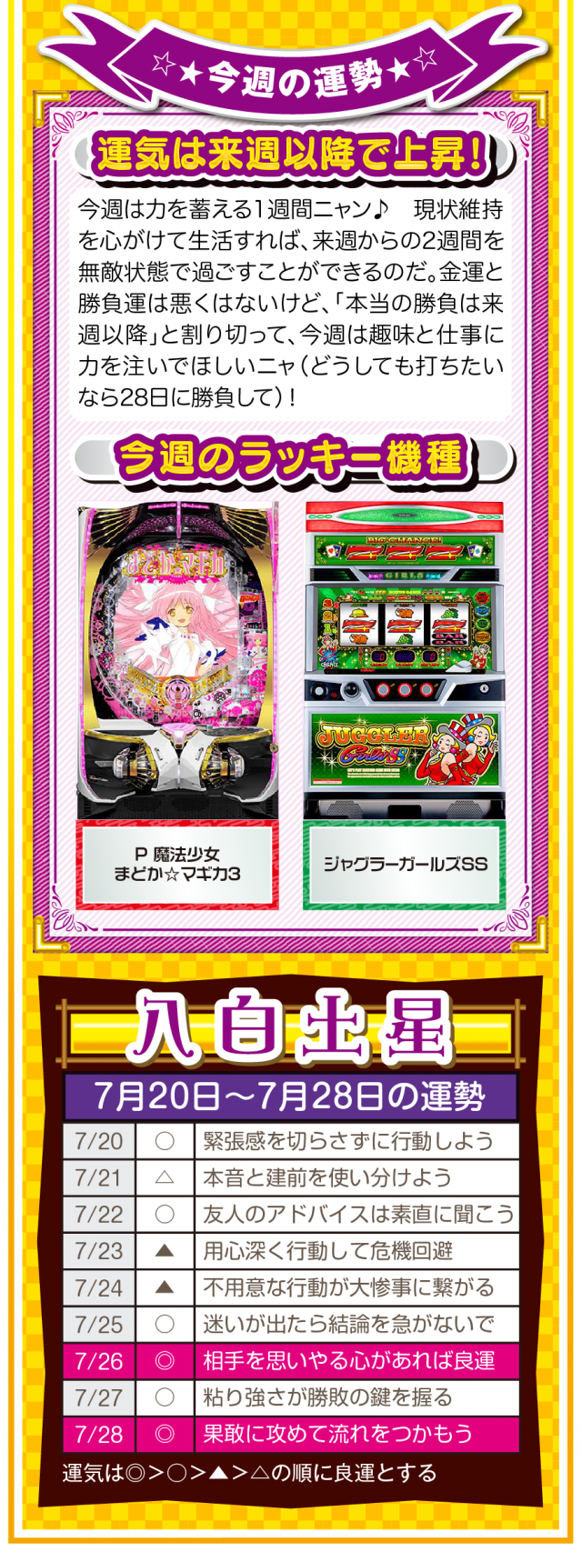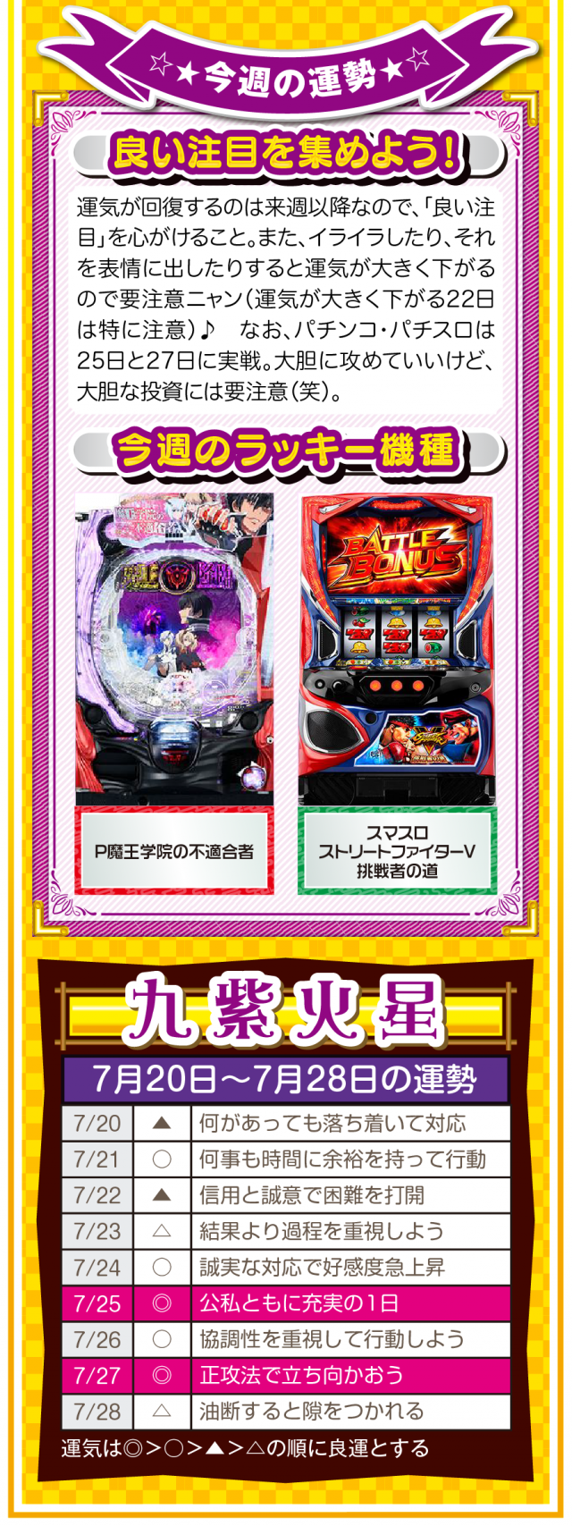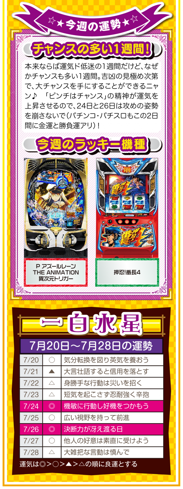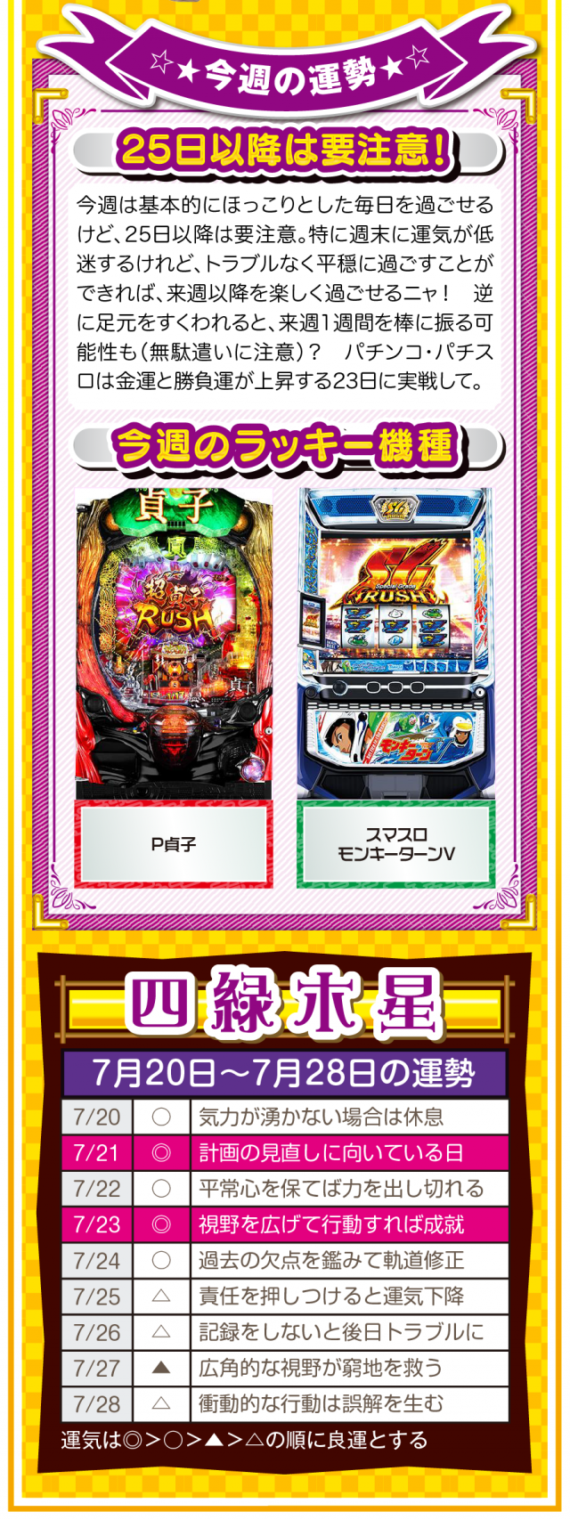 器の容量は人それぞれだけど、多くを得たいなら多くを失えばいいことを覚えておいてほしいニャン♪ というわけで早速、7月22日から7月28日の1週間を鑑定ニャ(断捨離し過ぎて部屋がスッカラカンのフォー・チュンチュンが、オマケとして20日と21日の運勢も鑑定したニャン♡)!